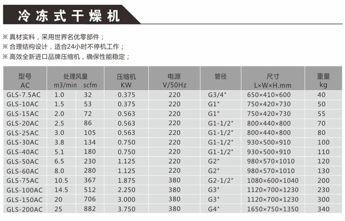 產品名稱(Product Name):冷凍式壓縮空氣干燥機